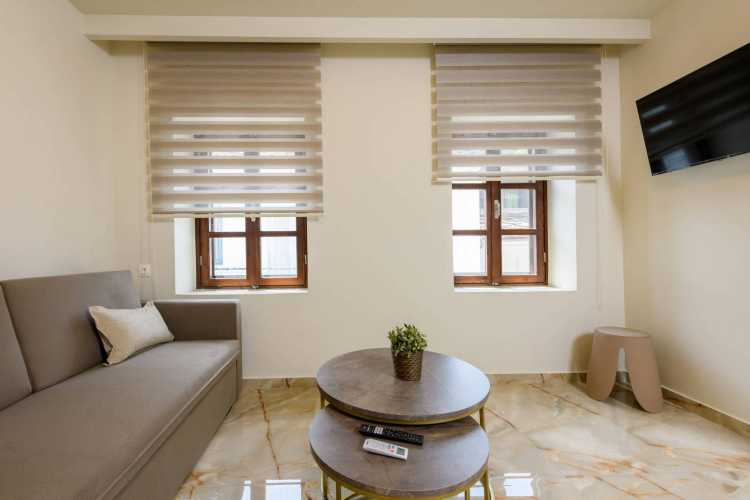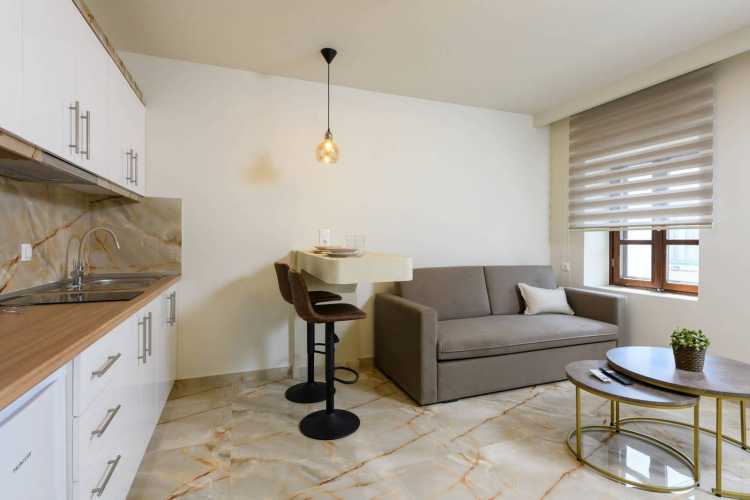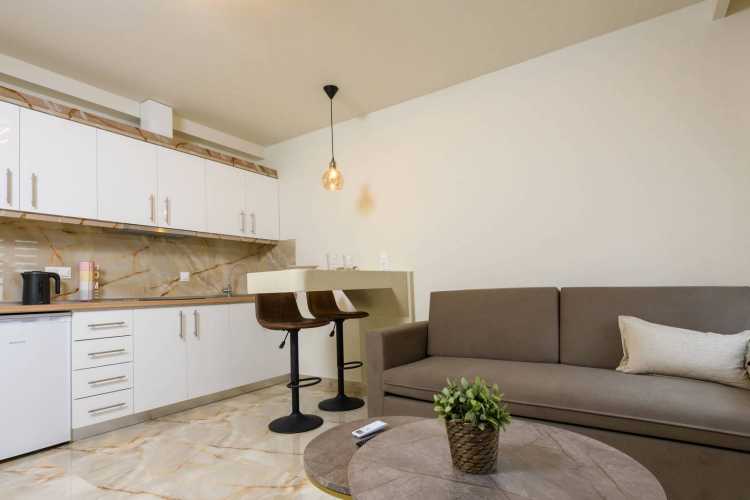Village 1912 in Panagia, Thassos, offers cozy one-bedroom apartments ideal for families or small groups. Each unit accommodates up to four guests and includes a double bed, a sofa bed, a fully equipped kitchen, and a bathroom with a shower. Modern amenities such as air conditioning, Wi-Fi, and a television ensure a comfortable stay. Some apartments feature a private balcony with city views. This accommodation is perfect for travelers seeking a peaceful retreat in a traditional village setting.